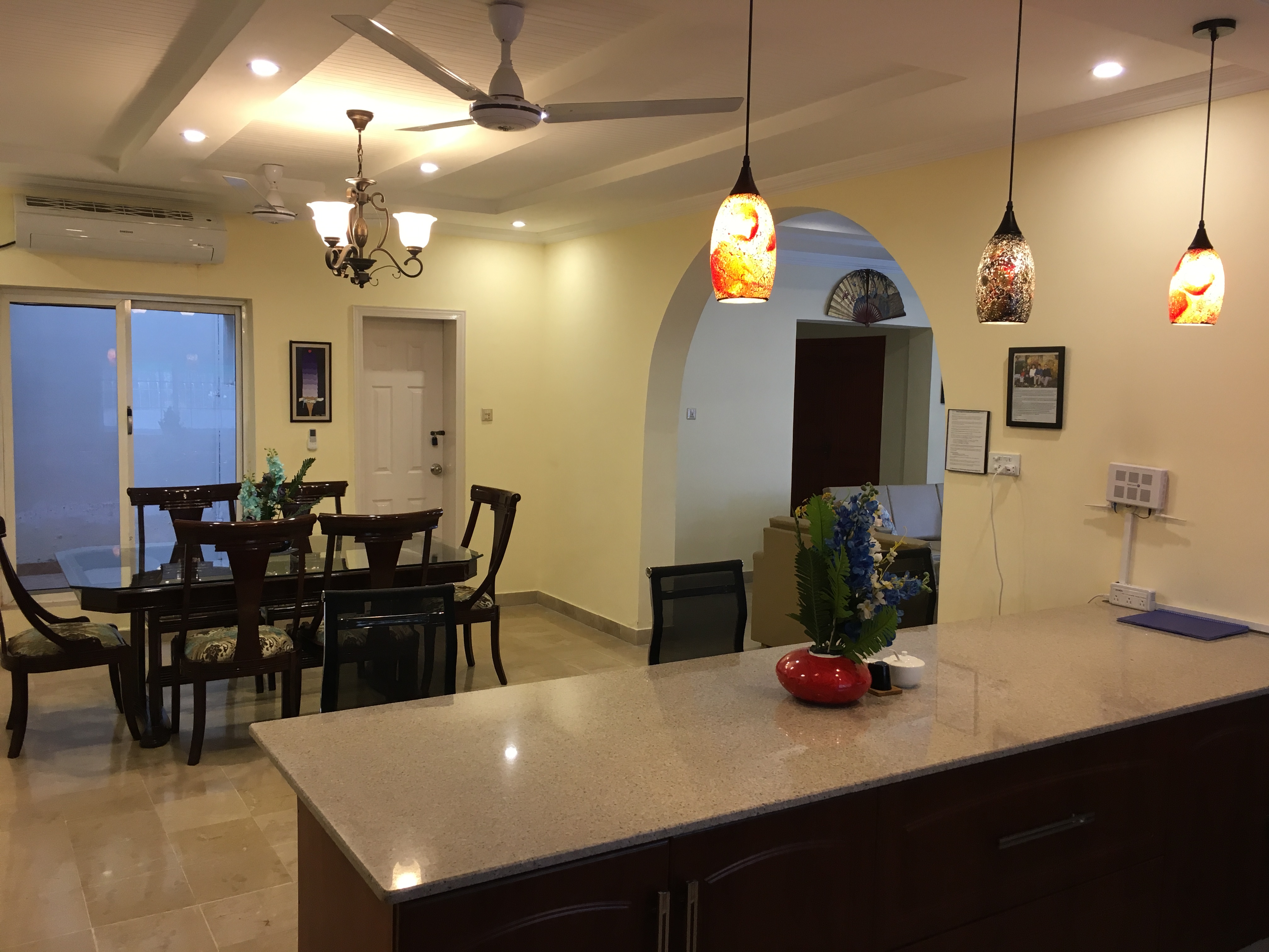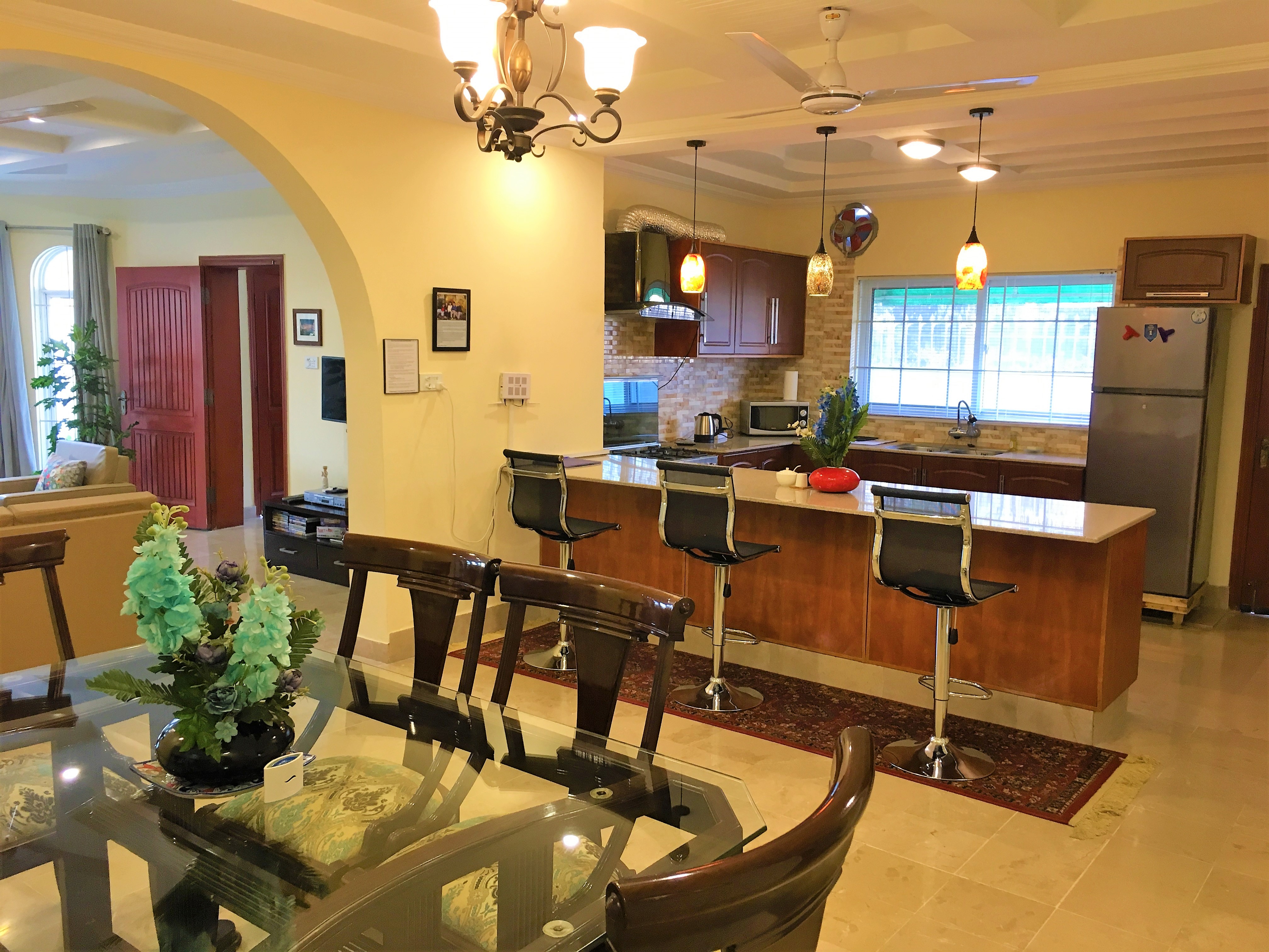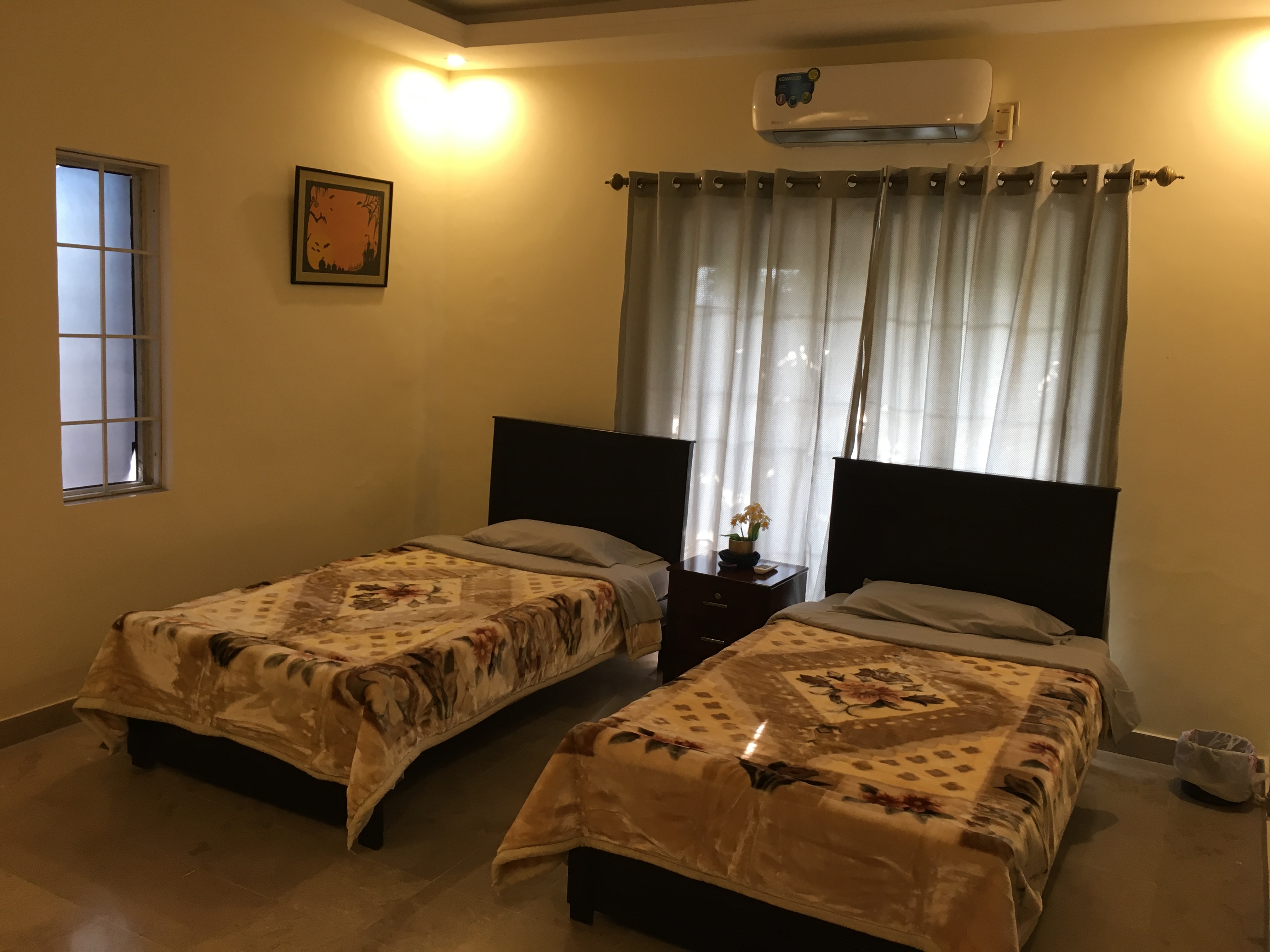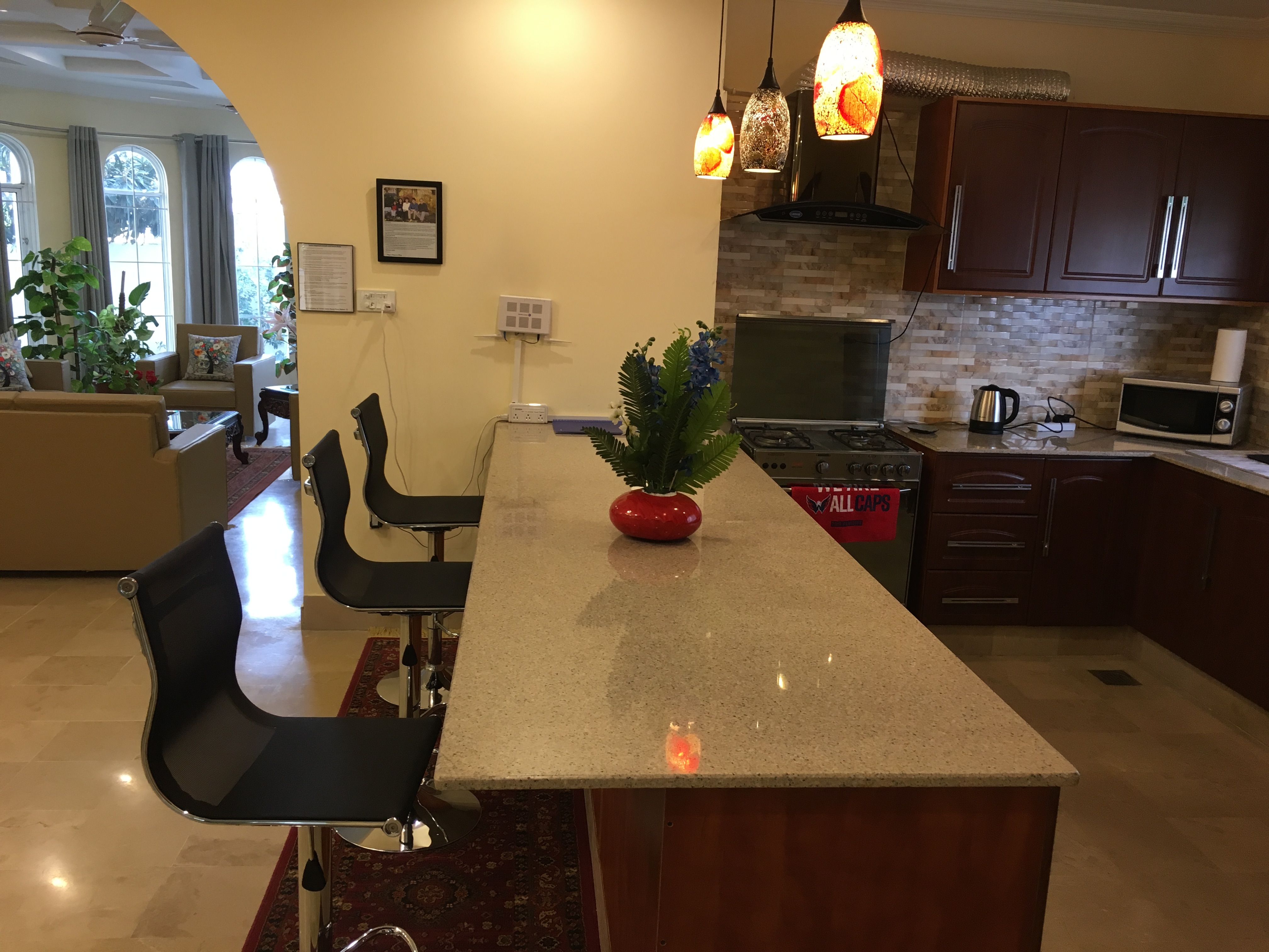 LAYOUT: ====== - 1st Floor: 3 BR, 2.5 Bath, Living, Kitchen, Dining & Laundry Room - 2nd Floor: 2 BR, 2 Bath, Fun & Game Room & 2nd Kitchen - Roof Top: An outdoor garden patio with fireplace, bar-b-q kitchen, and comfortable outdoor furniture BEDROOM/SPACE ASSIGNMENT DETAILS: ================================= - Group comprising 1-8 guests will be assigned the 3 bedrooms, 2.5 bath located on the 1st Floor unit, full access to the “fun & game” room located on the 2nd floor and roof top garden patio (basically everything you see in the pictures of this property) - Group comprising 9 – 14 guests will be assigned additionally up-to 2 bedroom(s) and 2 bath located on the 2nd Floor WHY AREN'T ALL 5 BEDROOMS ASSIGNED? ================================== - Our flexible pricing model accommodates families of all sizes instead of "one-price-fits-all" methodology - Smaller groups should not pay for rooms that they can't use or don't need - Larger groups need more rooms, resulting in higher cost for us to operate, which is why there's extra guest fees after a family of 2 - Closing certain bedrooms (at Owners’ discretion) allows us to directly pass on the saving to you through our flexible pricing model! WHY SHOULD YOU RENT MY HOUSE? ============================= - HOSPITALITY EXPERIENCE & HIGH STANDARDS: I possess 20+ years of executive experience with Marriott, Ritz-Carlton, Melia and many other hospitality organizations. I have applied high standards of accommodation to my house, which differentiates me from other hosts in the area - MORE THAN JUST BEDS: In addition to clean and cozy place to stay, we provide entertainment amenities such as movie projector room, table tennis, board games, outdoor patio, bar-b-q kitchen, breath taking Margala hills views, etc. - PRIVACY: You will have the house to yourself without sharing with the owners or strangers - SPACIOUS AND FULLY EQUIPPED: The house is spacious and full equipped - just bring your luggage – we provide the rest - PEACEFUL & CONVENIENT LOCATION: Close to everything, the house is just ten to twenty-five minutes away from 99% of key Islamabad location, but in a peaceful sector away from the City hustle and bustle - REASONABLY PRICED: My rates are cheaper than renting individual rooms in dated guest houses RATE NEGOTIATION? ================ I have posted the BEST POSSIBLE RATES in order to pass on the savings to you – essentially eliminating the hassle of back and forth rate negotiation. When comparing the prices, just remember that you are not renting individual bedroom (as in a typical hotel or a guesthouse) but an entire house that is clean, cozy, fully equipped, & centrally air-conditioned. My property comfort beats any guesthouse/hotel by a mile and matches or exceeds the cleanliness and quality of any five star hotels in Islamabad GUEST ACCESS: ============ - Group of 1-8: 1st Floor + 2nd Floor Fun and Game Room + Roof-Top Garden - Group of 9-14: 1st Floor + Entire 2nd Floor + Roof-Top Garden You will always have the house to yourself without sharing with Owner or Strangers! FOOD OPTIONS: ============= Breakfast (RS 250/person/meal) and Hire-For-Cooking Service (RS 750/day - you pay for cooking materials/grocery, we provide a chef to cook and do normal daily chores) Guests also have access to a fully equipped self-service kitchen to make their own healthy meals. Additionally, there are several nearby food delivery options (such as Pizza Hut, Paratha Party etc). Housekeeping Manager will provide a list of all those options upon guest arrival. NEED AIRPORT PICKUP: =================== No problem. It can be arranged for you (guest responsible for the pickup cost, which is around USD $20) CAR RENTAL: ========== It can also be arranged with our partner car rental company SECURITY: ======== The house has an on premise guard, providing 24/7 security SUMMARY: ======== With AC in all rooms, high speed Internet/cable, fun & game room with movie theater, outdoor bar-b-q, and much more, this place has it all you need to have a memorable experience. It’s time you expect more when visiting beautiful Islamabad!