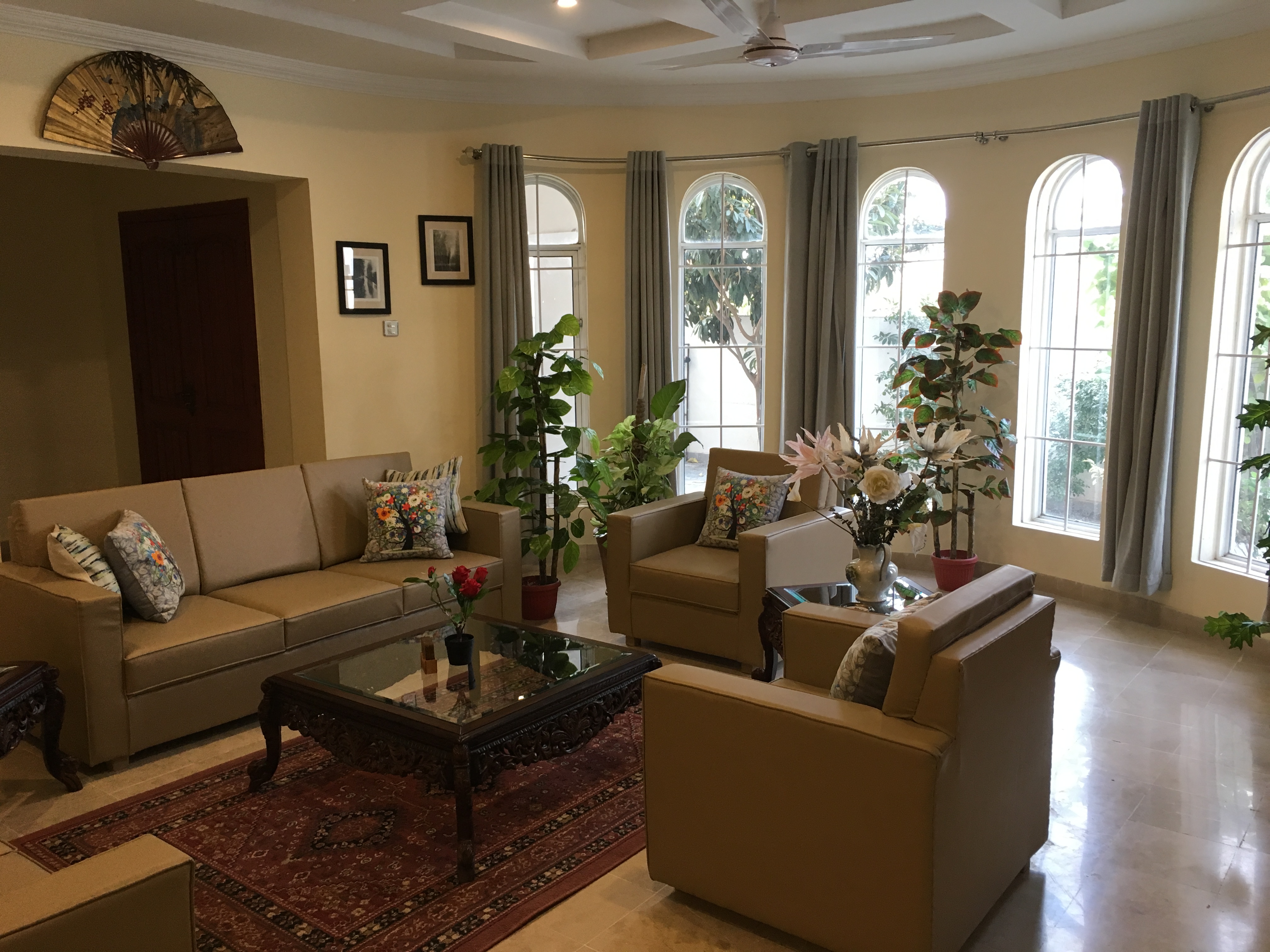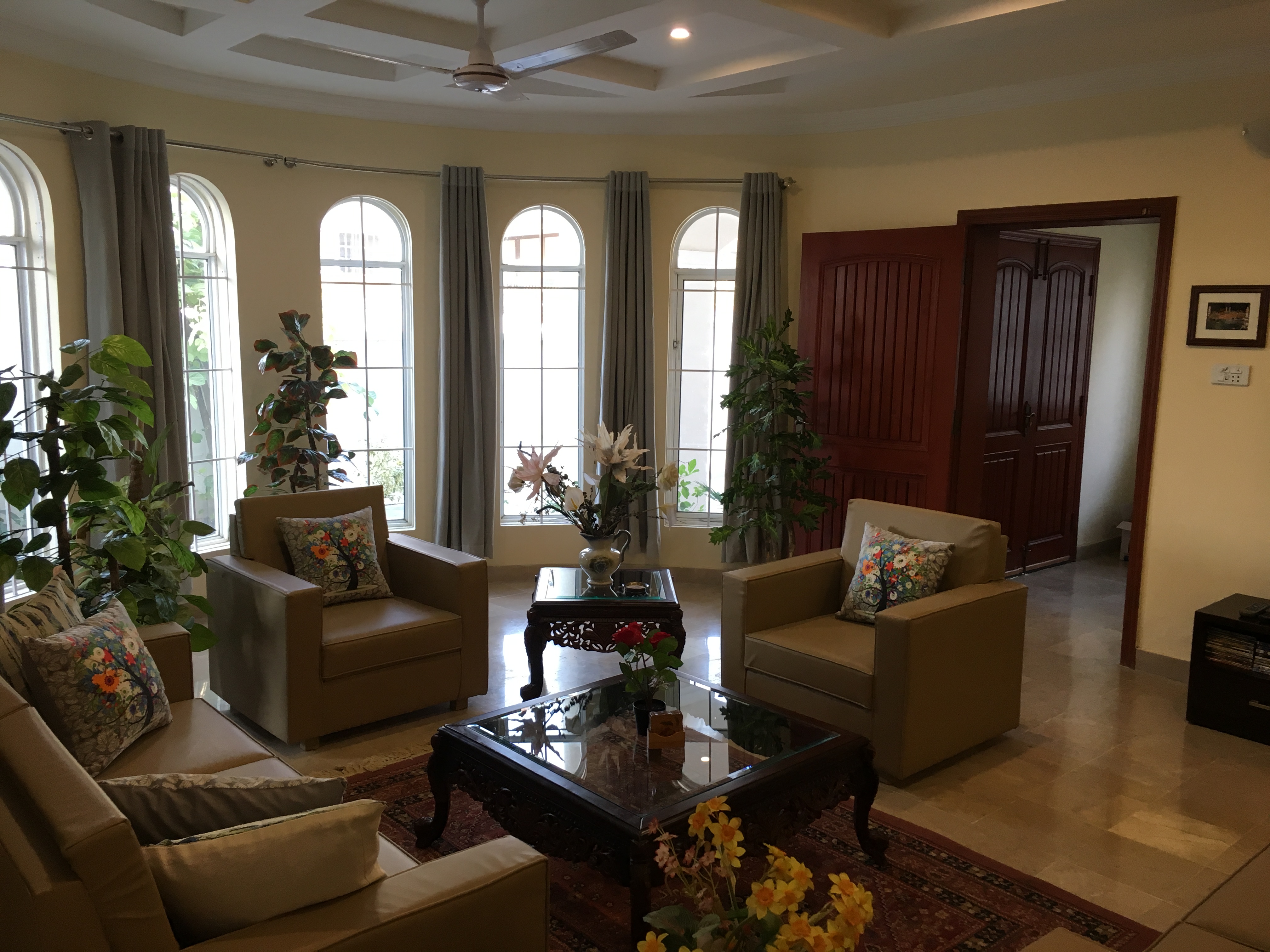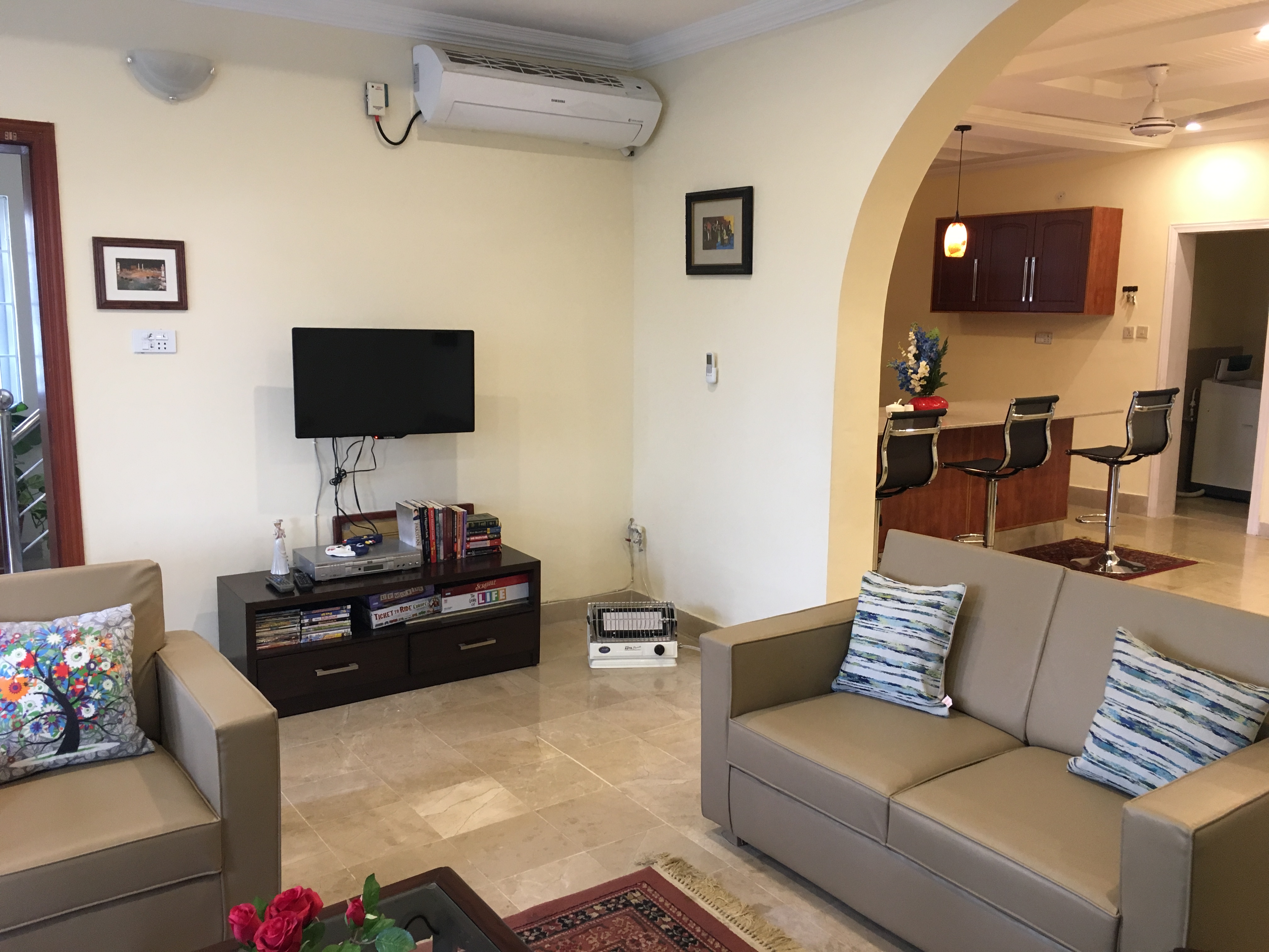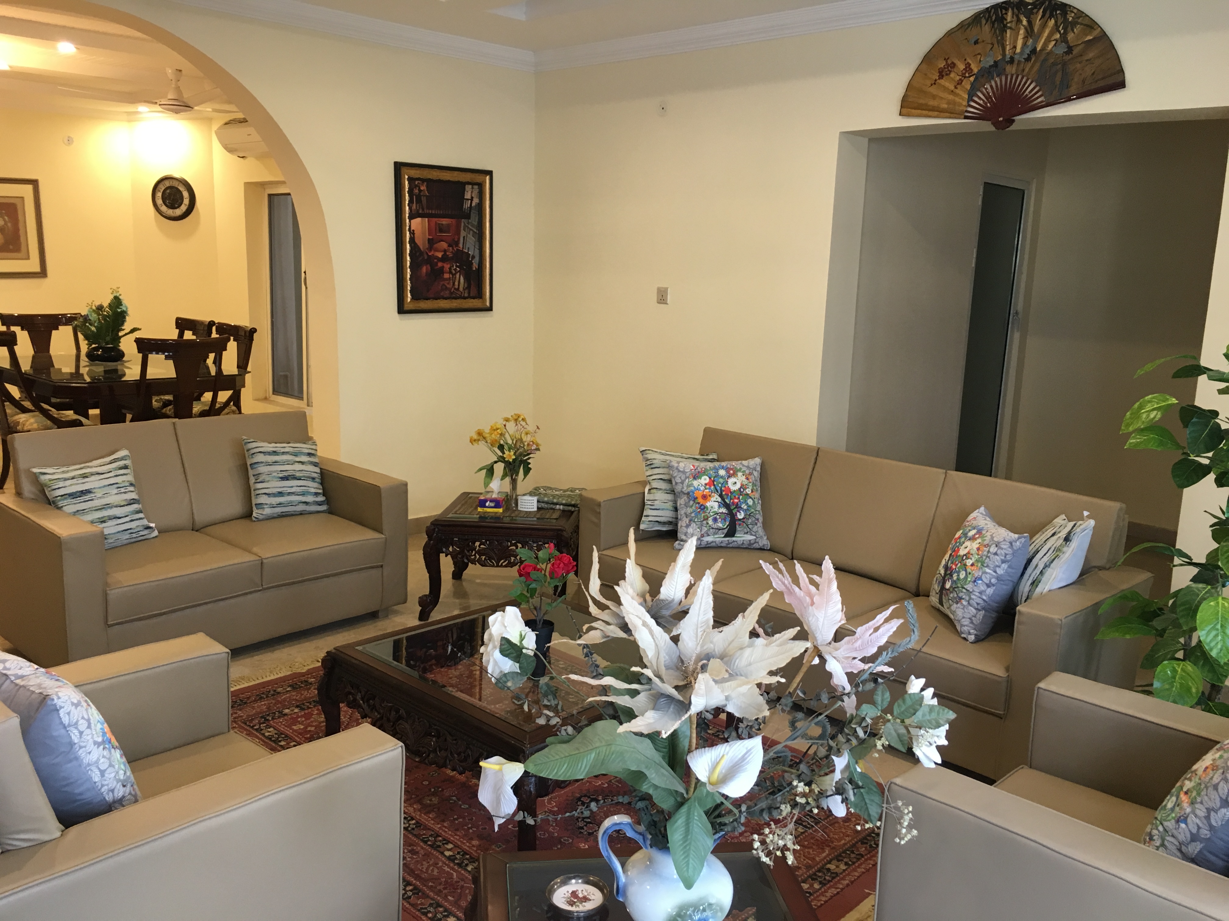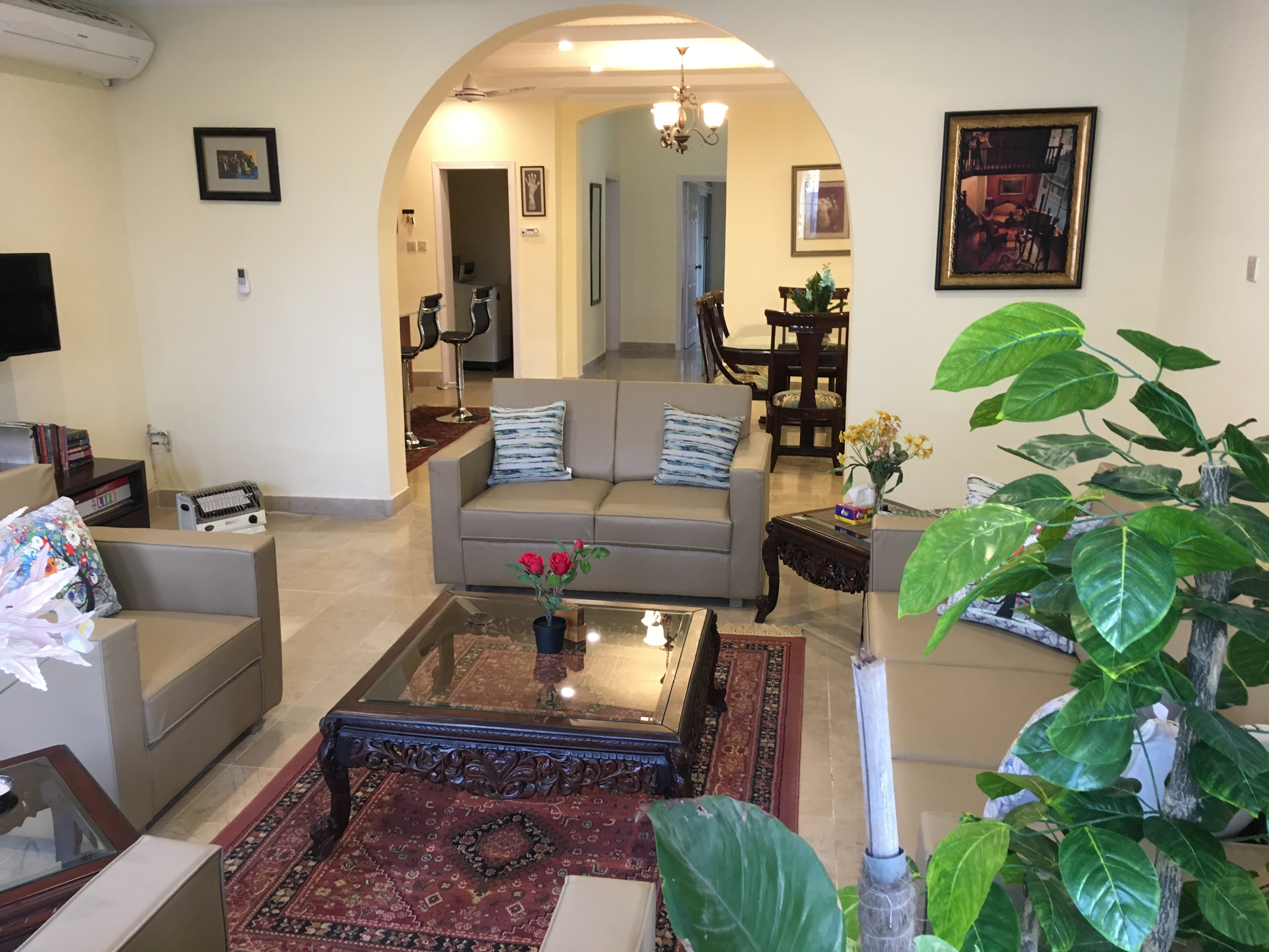 Comprising of over 4000 SQ/FT of living space, this 5 BR, 4.5 Baths, is more than a home – it’s a ‘Home Resort’! Suitable for families, expats and foreigners, this house not only provide all homey comforts, but many entertainment amenities of a resort. With AC in all rooms, high speed Internet/cable, fun & game room with movie theater, outdoor bar-b-q, and much more, this place has it all you need to have a memorable experience. It’s time you expect more when visiting beautiful Islamabad!